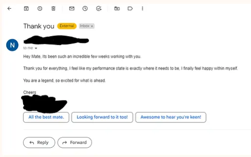 Nik has helped me see myself in a different light, he helped me overcome the darkest hour of my sporting career. It has led me to live a happier & healthier life.